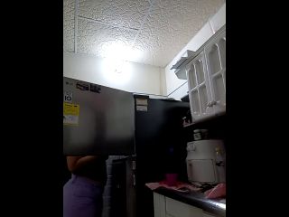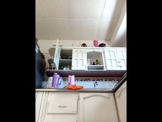 Masturbating in the kitchen