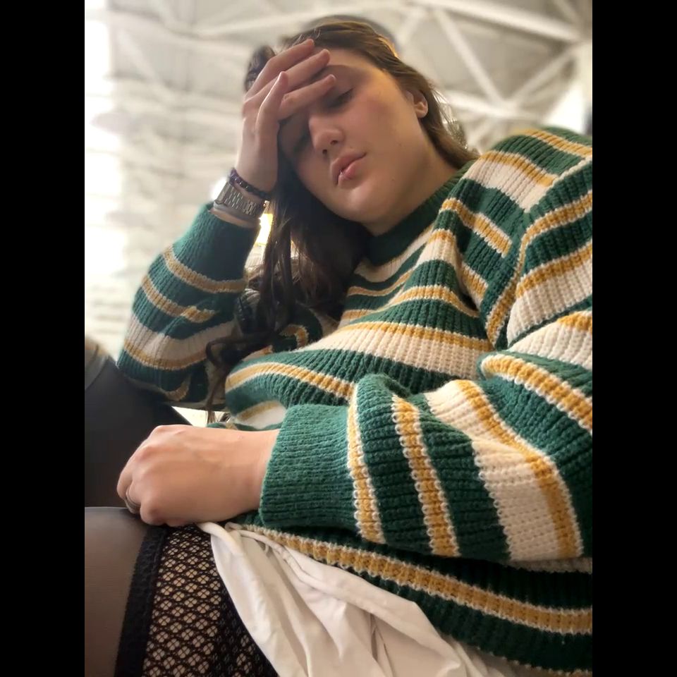 hi, today we will have a great time in the park and shopping center Goal: take off your bra and show your breasts