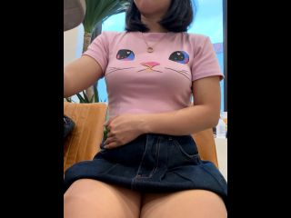 Goal: cum and squirt naked in coffee shop