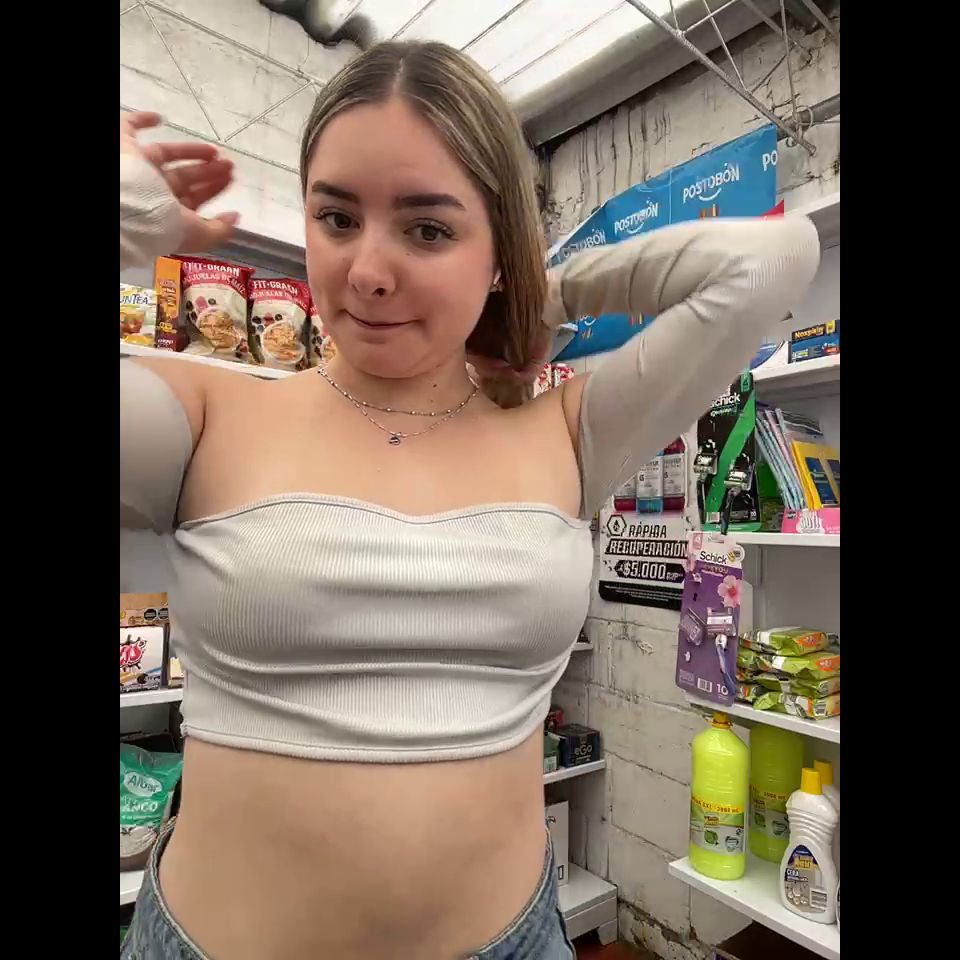 Goal: get naked in store + rub pussy