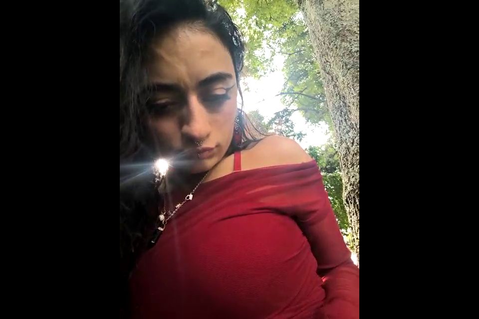 Goal: Masturbating behind a tree outdoors