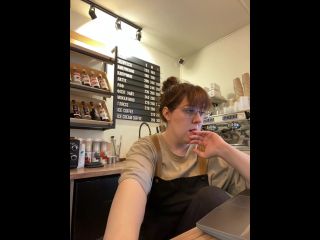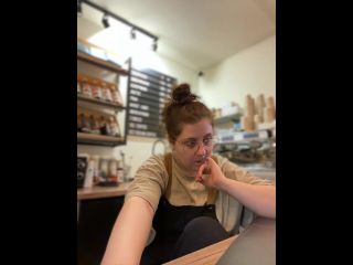 Hey! I work in a coffee shop, my boss is constantly watching camera Goal: MAKE MY PUSSY WET AT MY WORK
