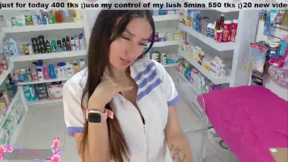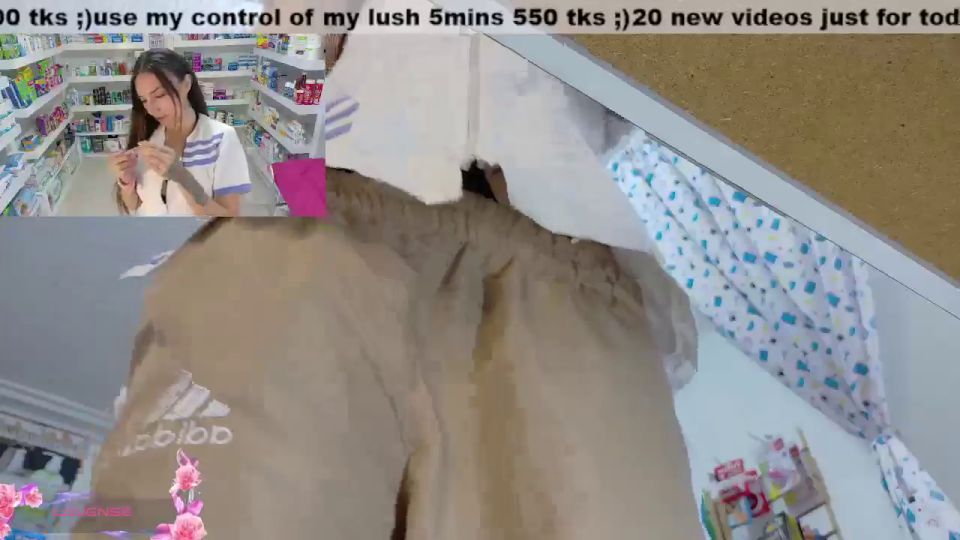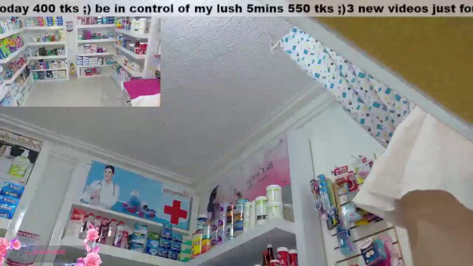pharmacy ;)any flash 100;)open the zipper 1000;)off panst 1400- 8mins off;) hitachi 400;) off panty + squirt 4586