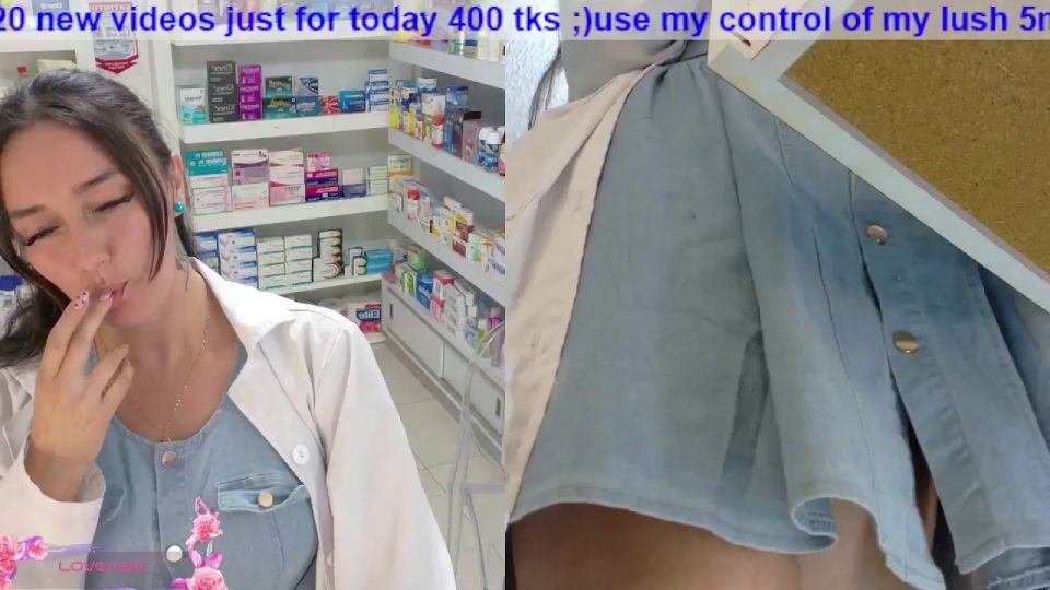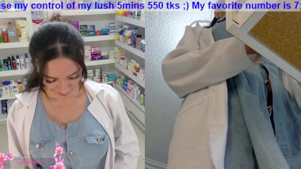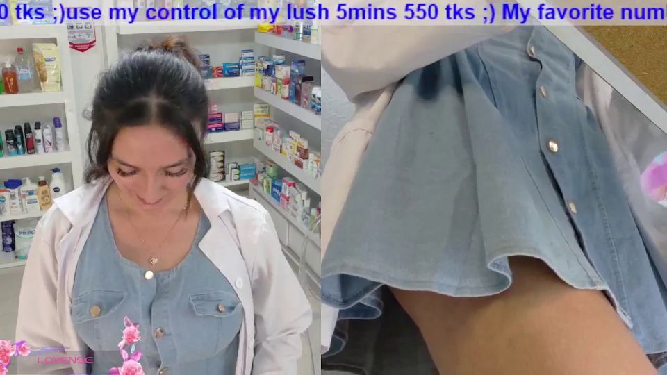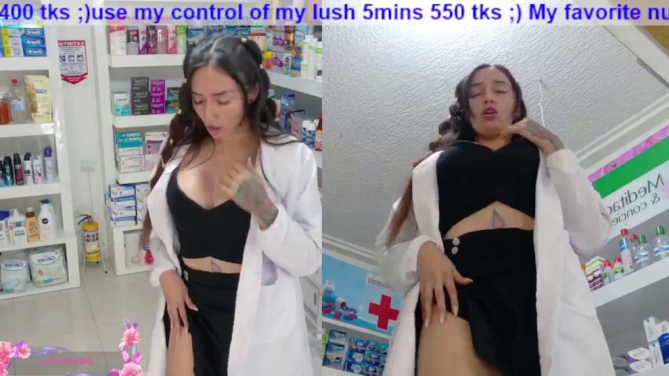 pharmacy ;)any flash 100;)put clamps nipples130 ;)finger in pussy 120 ;)off lingerie 1000;) off uniform + squirt