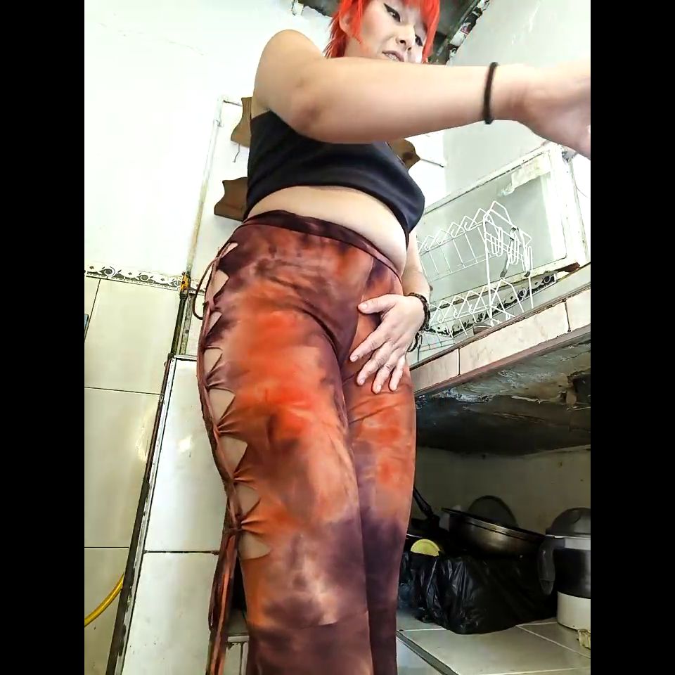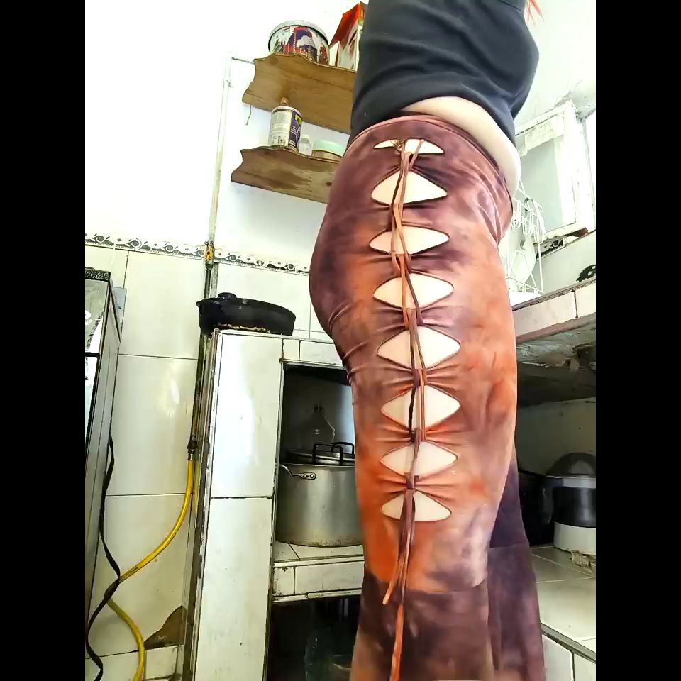 In the kitchen without pants