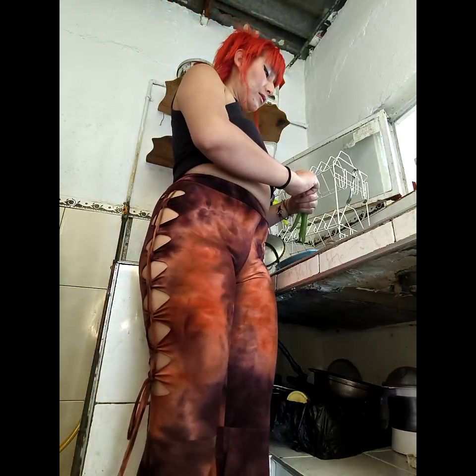 While I'm in the kitchen, you're deliciously wetting my hairy pussy in public.