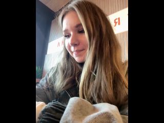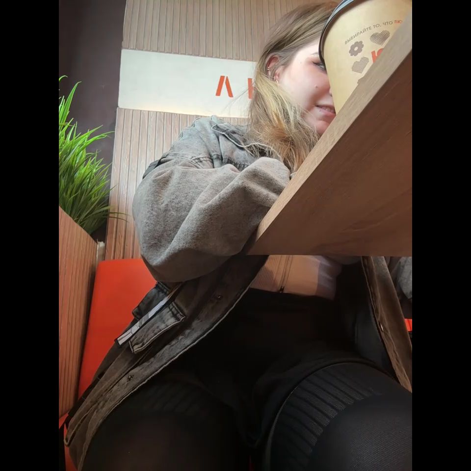 VIBE MY TOY WITH 77 tokens for HOT VIDEO! Goal: SQUIRT IN THE CAFE UNDER TABLE