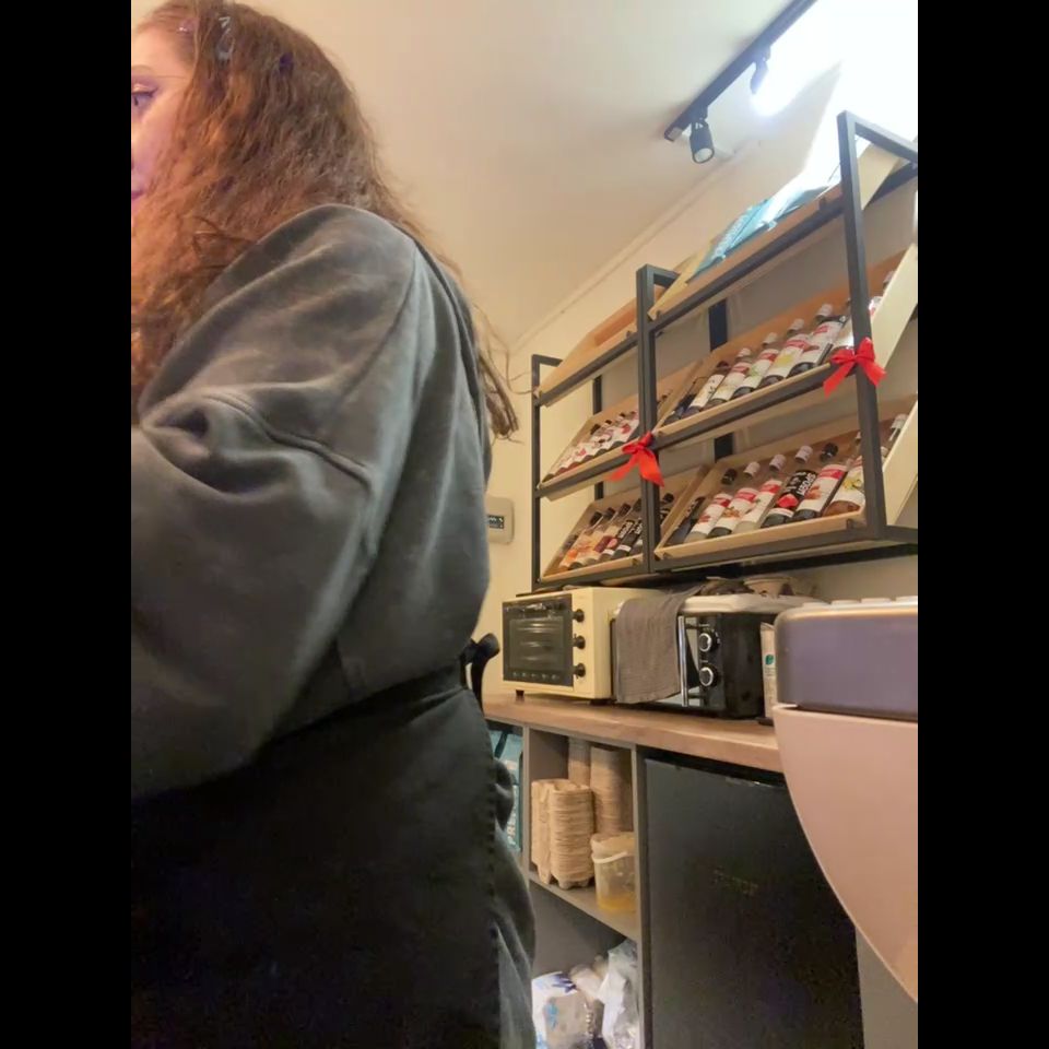 Hey! I work in a coffee shop, my boss is constantly watching camera Goal: MAKE MY PUSSY WET AT MY WORK