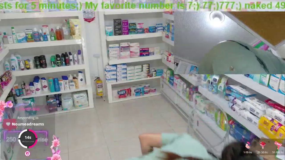 pharmacy ;)any flash 100;)clamps nipples 130:) tits out 450 tks;)squirt 777;) off panty +naked dress 3 mins 1355