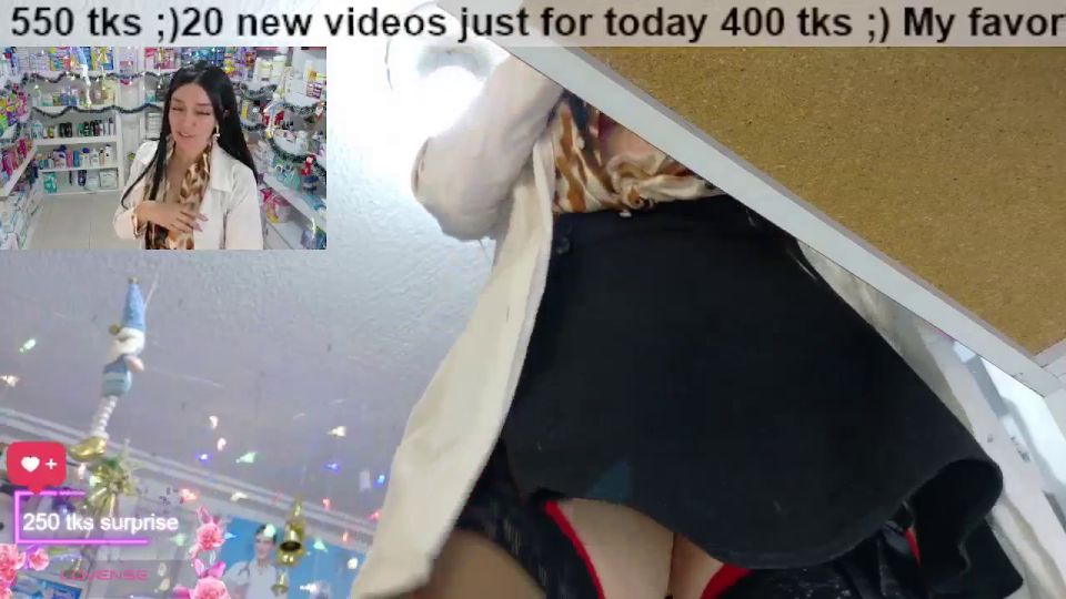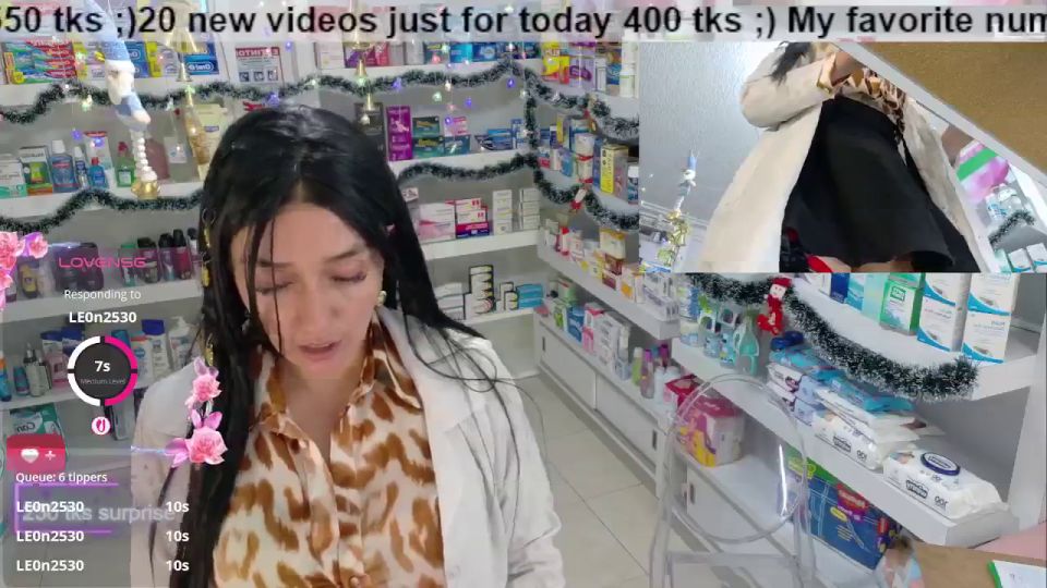 pharmacy ;)any flash 100;)put clamps nipples130 ;)open blouse 450 tks;)squirt 777;) off underwear+squirt 1659