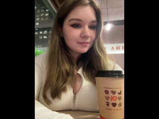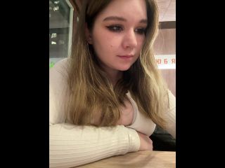 VIBE MY TOY WITh 88 tokens for HOT VIDEO! Goal: SQUIRT IN THE CAFE UNDER TABLE