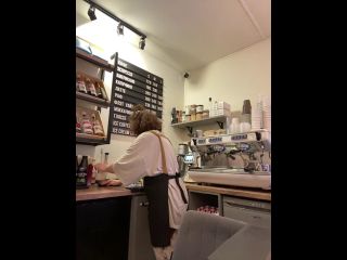 Hey! I work in a coffee shop, my boss is constantly watching camera Goal: SQUIRT IN A COFFE SHOP