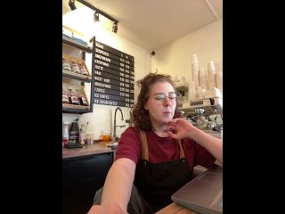 Hey! I work in a coffee shop, my boss is constantly watching camera Goal: MAKE MY PUSSY WET AT MY WORK