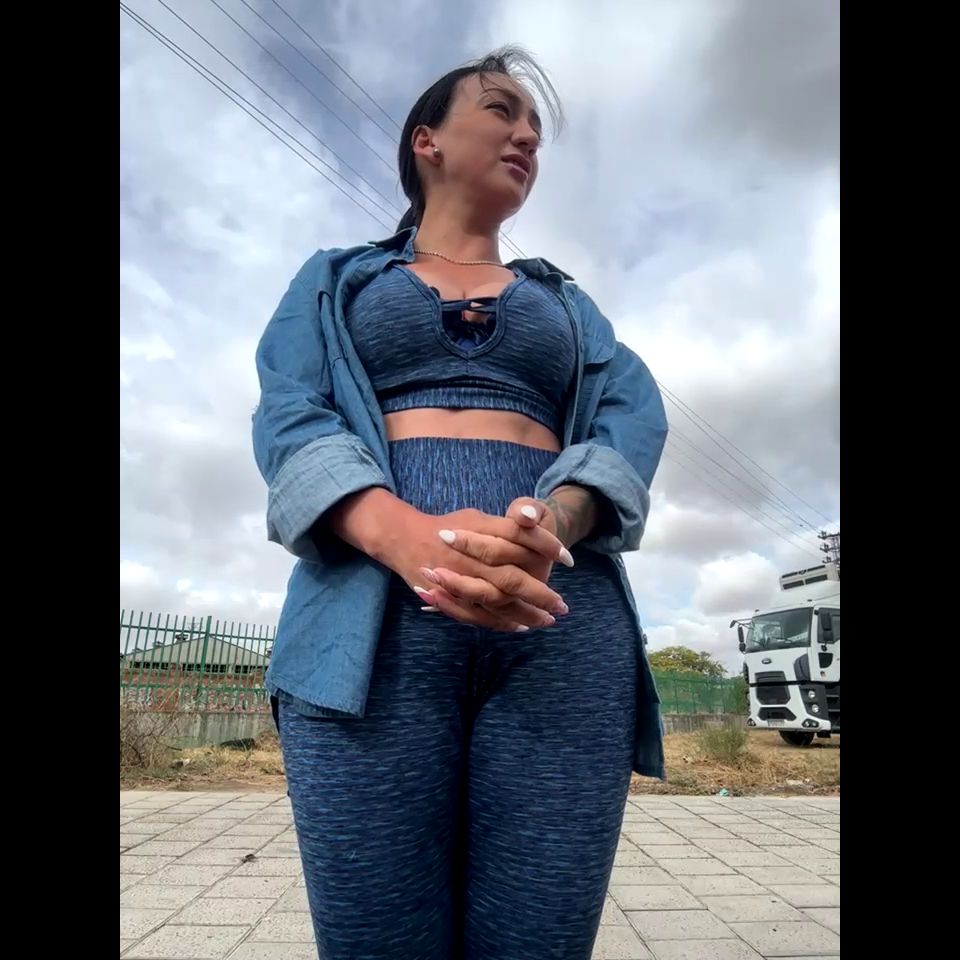 #street#naughty#saliva Goal: take off bra + show wet pussy in gym)