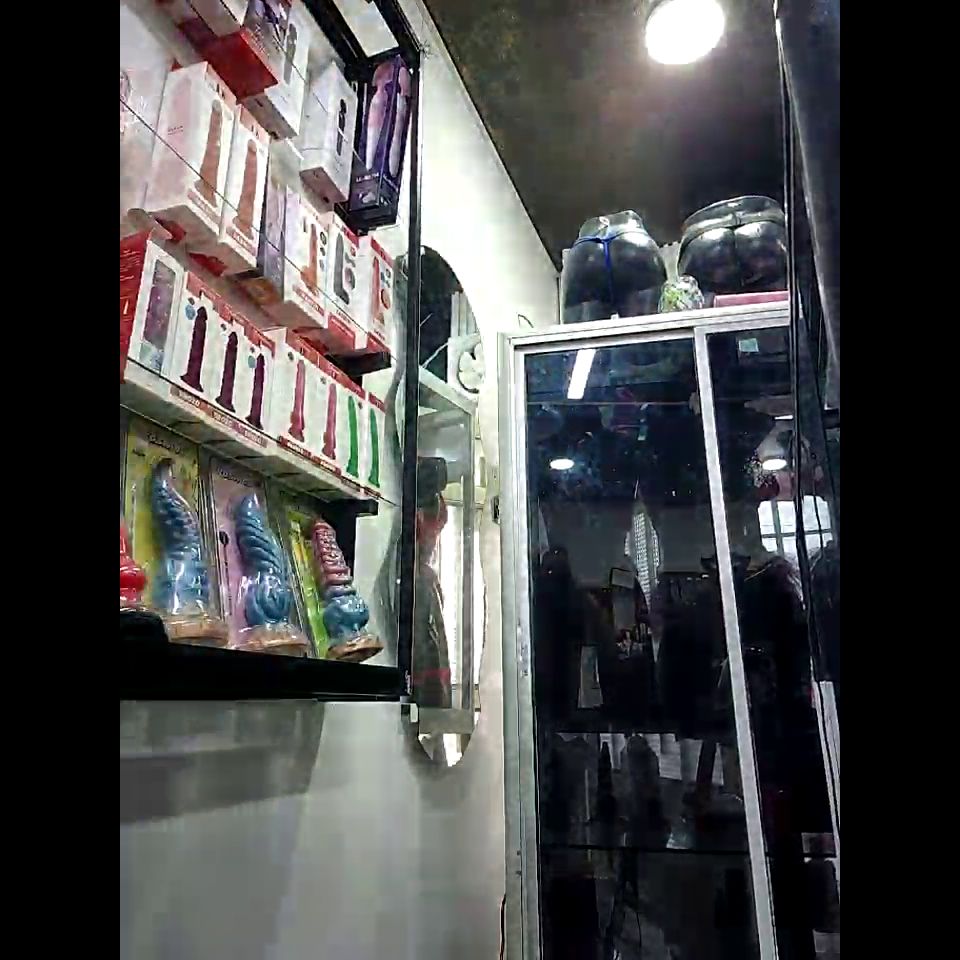 Goal: naked in the sexshop+full play dildo+cum