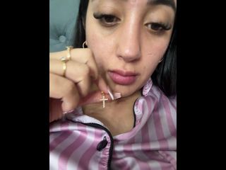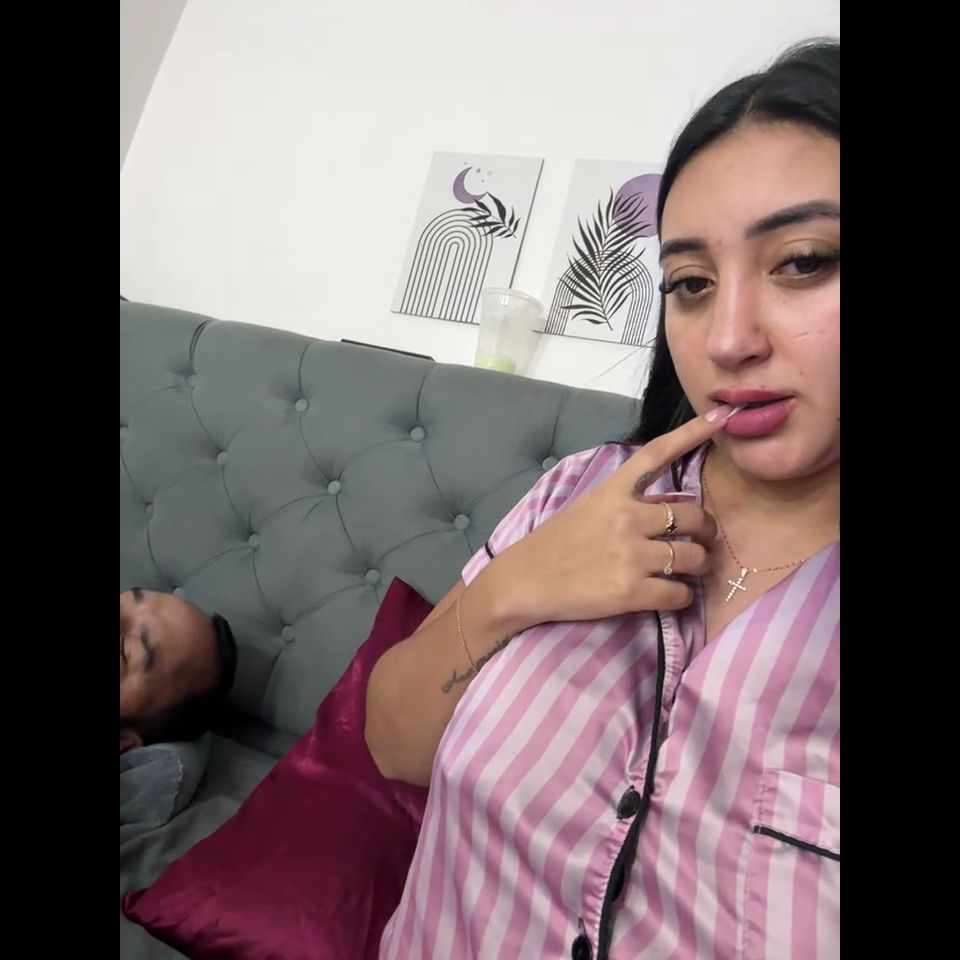Silence, my friend is next to me without knowing what I'm doing Goal: Suck finger + play boobs