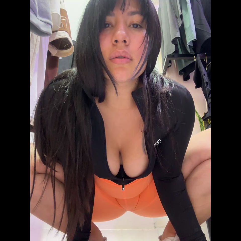 #sportswear #voyeur #work #leggings #latina Goal: Shake your tits in the store for 2 lnts