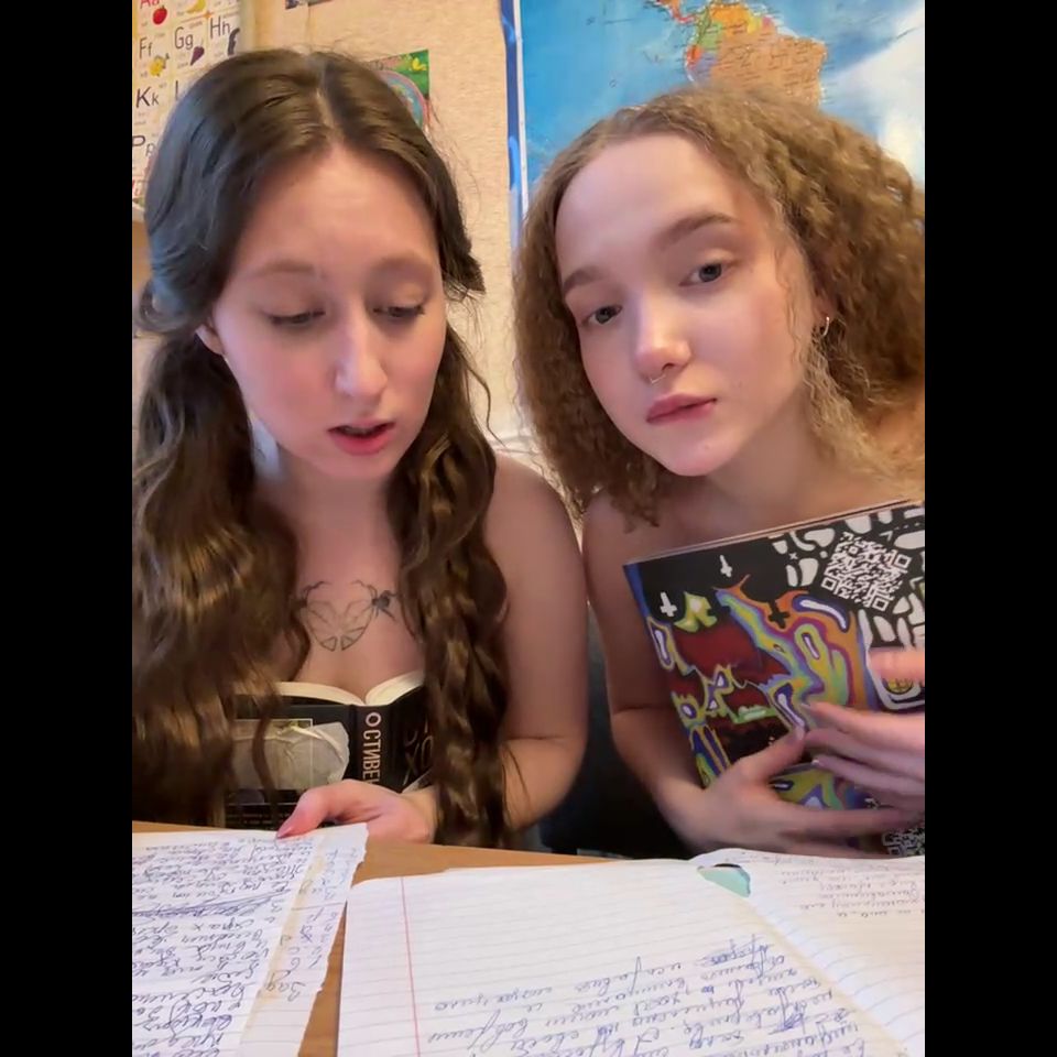 Goal: Anna spread pussy under school desk