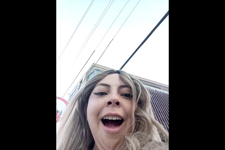 outdoor, public show, street office Goal: Drooling tit in public