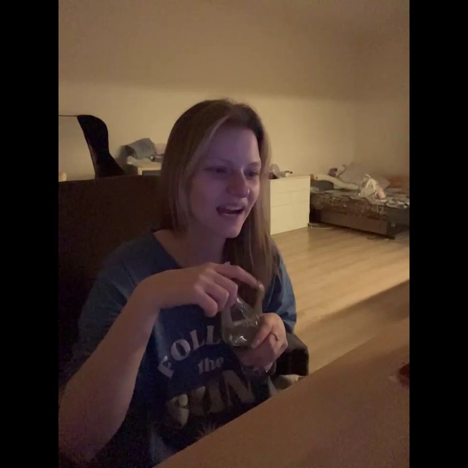 Goal: Sucking a dildo with saliva on her tits