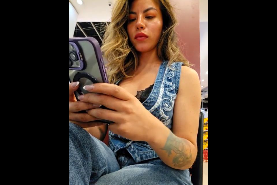 #showpublic #joi #latina #blonde #bigtits #bigass #feed Goal: Open the buttons, I'm hot in mall