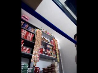 Tits outside in public store