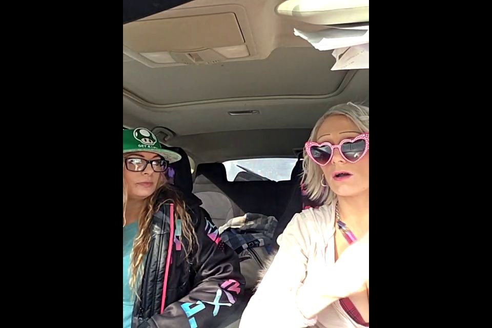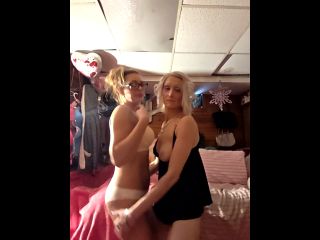 Out n about play and girl on girl Goal: Girl uses strap on in girl naked